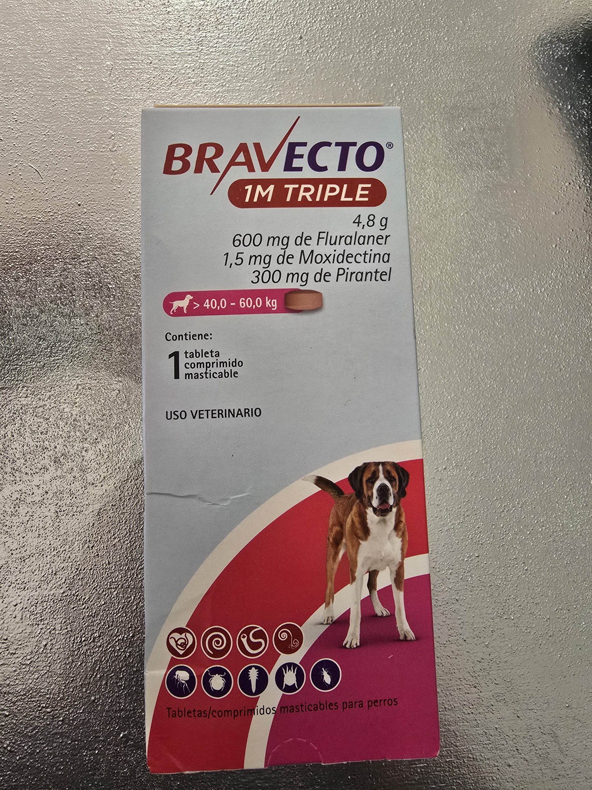bravecto para el tratamiento y prevención de infestaciones por garrapatas, pulgas, ácaros y parásitos internos, protege hasta por 37 dias