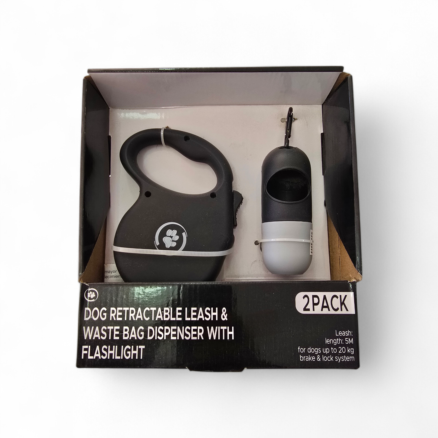 correa retractil con lampara y dispensador de bolsa sanitaria , 5 metros de largo con seguro y sistema de freno , para perros de hasta 20kg