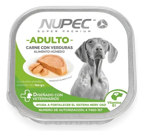 alimento humedo para perro adulto nupec , carne con verduras